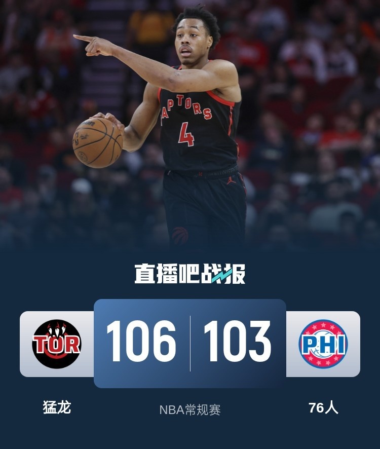 巴恩斯33+10 恩比德致命失误 马克西9中1 猛龙送76人4连败