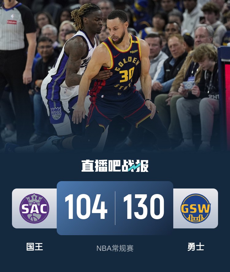 首节开局所有人都聚焦库里,这反倒让格林和波斯特连续得到机会,两人包揽球队前17分里的15分带队迅速确立起领先;暂停回来库里命中三分来到记录门口,勇士全队首节命中7记三分确立起12分的领先;次节国王防守重心过于倾向库里导致勇士其他球员全面开花,整个上半场勇士10人轮换全部都有得分入账且最多领先23分;不过最后4分钟里勇士哑火仅罚球拿到2分导致优势被蚕食至10分进入下半场。休息归来国王延续状态连续命中三分一度追至4分;不过勇士及时回暖,库里则在期间命中三分达成个人4000记三分里程碑,关键的拉锯战里勇士的角色球员成为取胜关键,以希尔德连续三分重新拉开分差为主,勇士在下半场没有绝对得分爆点的情况下,依靠多点开花重新拉开20分以上的优势奠定胜局。最终,库里在自己里程碑一战虽然没有拿到高分,但勇士仍然以26分的优势大胜国王迎来6连胜。