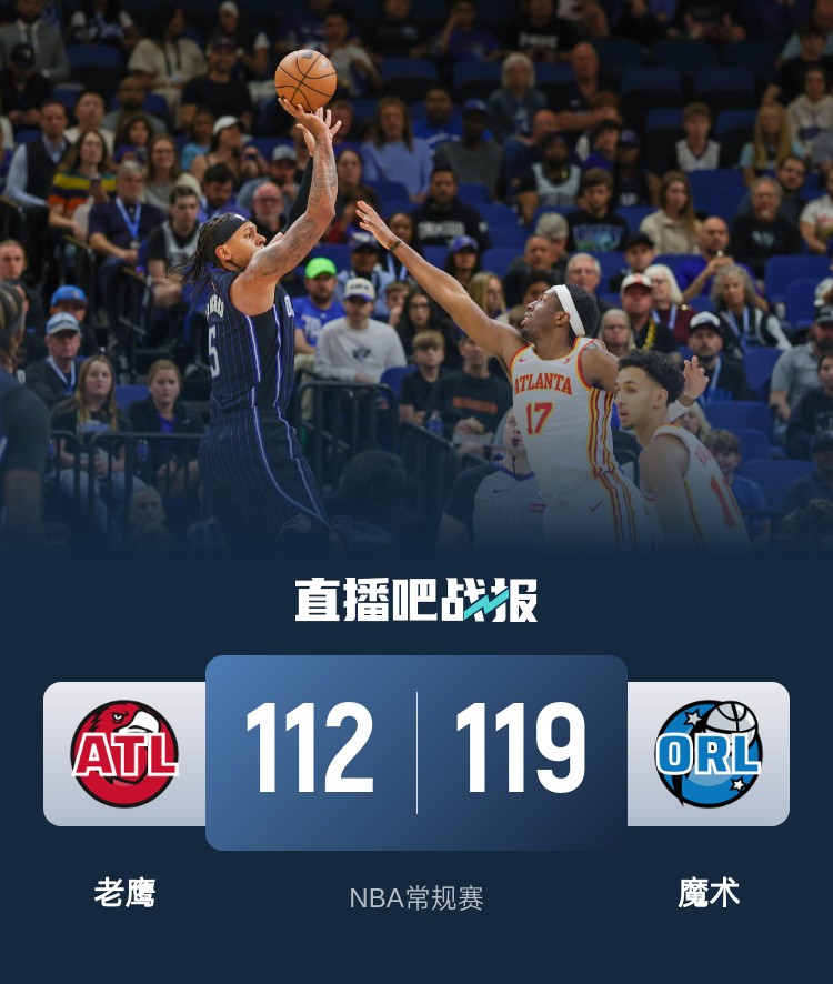 班凯罗33+10 小瓦格纳22+6+6 杨28+10 魔术力克老鹰迎3连胜