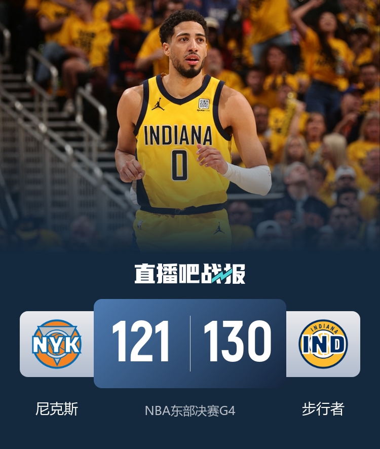 哈利伯顿32+12+15&0失误 西卡30+5 步行者力克尼克斯夺得赛点