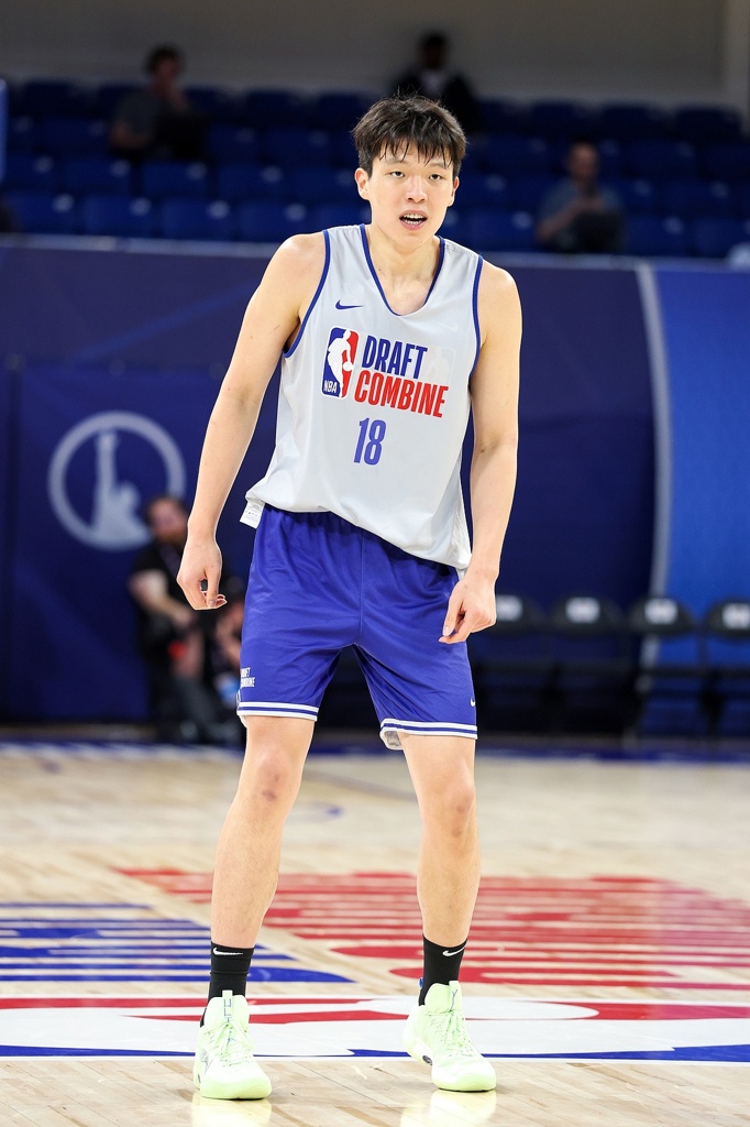 这位来自中国、身高7尺1寸(约2.16米)、体重253磅(约115公斤)的中锋将在选秀第二轮当晚迎来自己的20岁生日。他拥有令人着迷的体型(站立摸高9尺3寸/约2.82米,臂展近7尺3寸/约2.21米),同时兼具投篮手感和扎实的传球能力,他的比赛还拥有着上升空间。
