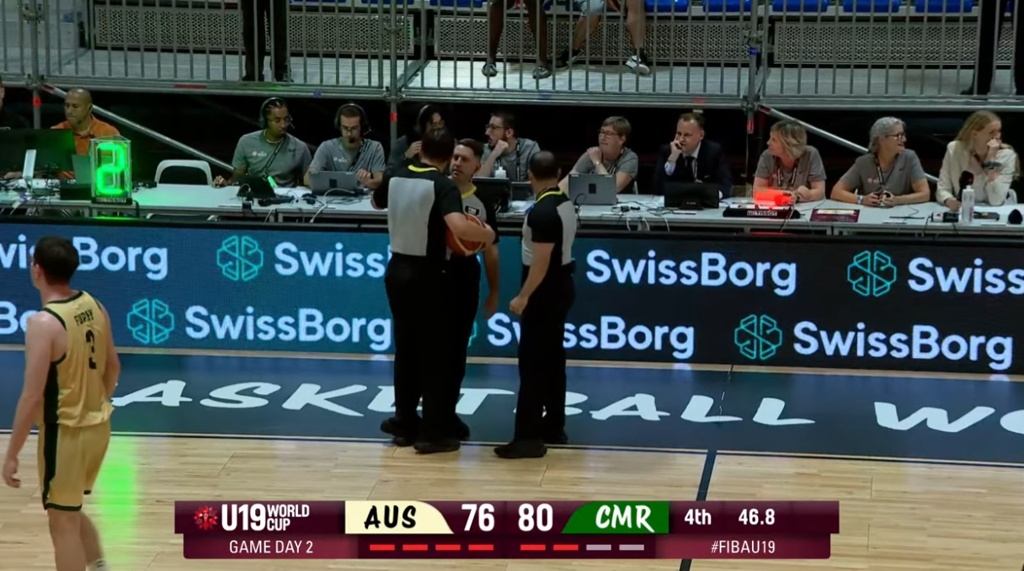 这一幕也震惊了现场所有人,包括底线裁判,底线裁判第一时间根据规则先给出了无效的判定,后来经过三位裁判协商,最终给澳大利亚加上了这喀麦隆送来的2分。