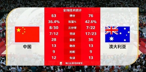 比赛上来,两队就打得十分胶着,中国女篮能够与对手形成拉锯之势,但是首节最后一分半钟的时间里她们没有再得分,澳大利亚女篮趁势连拿7分,次节中国女篮的表现更加低迷,前半节的时间里只拿到3分,分差也是一度突破了二十分,半场结束时中国女篮落后18分;下半场回来,中国女篮的防守强度明显提升,她们将澳大利亚女篮的单节得分控制在10分,分差也是被缩小回个位数,末节中国女篮没能延续追分势头,分差被再次拉开,最终中国女篮不敌澳大利亚女篮。